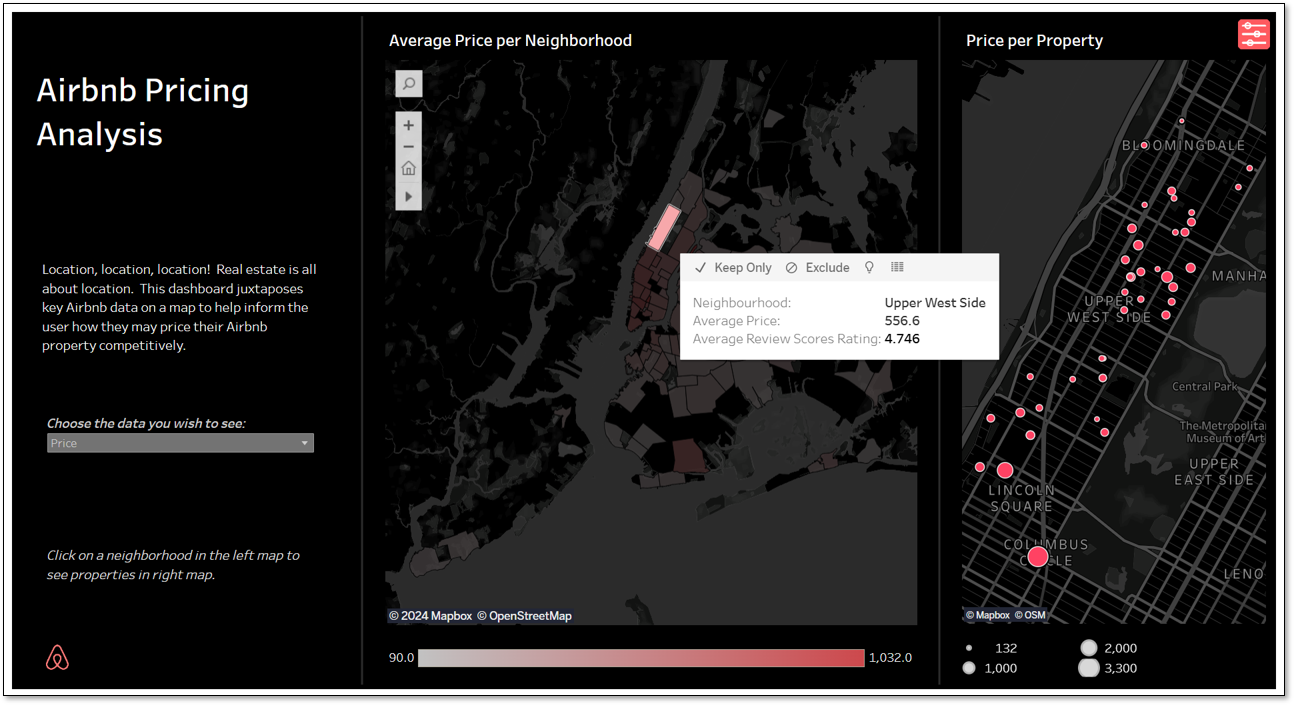 - Leveraged Tableau to create an interactive dashboard using Inside Airbnb data, enabling efficient analysis of market trends and competitor pricing.